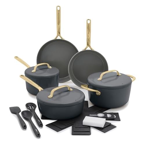 Super Hot! Get GreenPan GP5 14-Piece Hard Anodized Cookware Pots and Pans Set, Healthy Ceramic Nonstick PFAS-Free, Champagne Handles, Heavy Gauge, Stay-Flat Surface, Induction,Dishwasher and Oven Safe, Slate from Amazon.com (Sold & Shipped directly by Amazon).