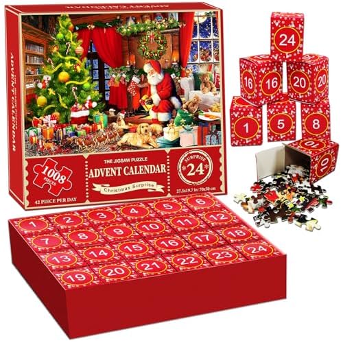 Lowest Ever! Get 1008-Piece JUNQIU US 24 Boxes Christmas Advent Calendar 2024 Jigsaw Puzzle for Adults and Kids from Amazon.com (Sold by hong lu ke ji, Fulfilled by Amazon).