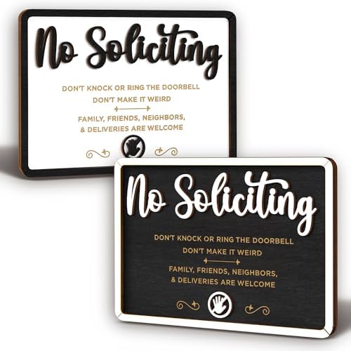 Super Hot! Get Woodamore Funny No Soliciting Sign For House Door - Small No Soliciting Sign For Front Door Hanging, Do Not Knock Or Ring Doorbell Signs For Home, Wooden No Solicitors Signs For Office Business (7 in. L x 5 in. W) from Amazon.com (Sold by EXCOOL CLUB, Fulfilled by Amazon).