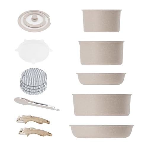 Super Hot! Lowest Ever! Get 5-Pieces Caannasweis Detachable Nonstick Cookware Set With Removable Handles, Dishwasher Safe - For RV Camping, Oven and Stovetop Use (Brown) from Amazon.com (Sold by OPLUSTECH, Fulfilled by Amazon).