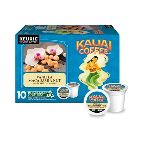 Get Kauai Coffee K-Cup Pods for Keurig Brewers - Arabica Coffee, 10% Hawaiian - Medium Roast, Vanilla Beans with Toasted Macabamia Nuts - Vanilla Macadamia Nut, 1 Pack of 10 Single Serve K-Cups from Amazon.com (Sold & Shipped directly by Amazon).