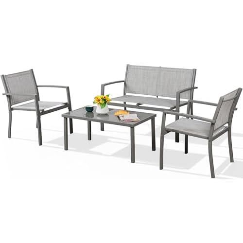 Great value for money! Sturdy frame and soft, durable fabric hold up well outdoors. Perfect 4-piece set fits my small patio, seats 4 comfortably. Easy to clean, resists fading. Love using it for morning coffee and chats. Highly recommend for the price!