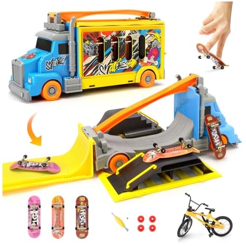 Super Hot! Lowest Ever! Gift Idea! Get Hestiasko Transforming Truck Toy for Kids, 2-in-1 Vehicle Playset and Finger Skateboard Park with Ramps, 3 Fingerboards, Finger Bike, Extra Wheels and Storage Compartments from Amazon.com (Sold by Hestiasko, Fulfilled by Amazon).