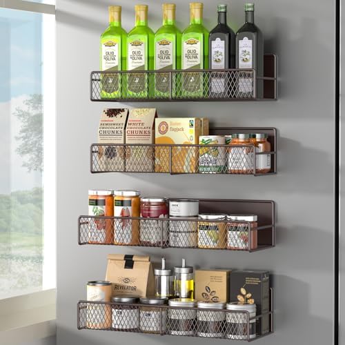 4.8 Rating Over 2800 Revies! Super Hot! Get 4-Pack DTUQYX Magnetic Spice Rack for Refrigerator, 100% Metal Strong Magnet Fridge Shelves, Space Saving Spice Organizer, No Drilling Moveable Home Kitchen Laundry Room Storage Organization (Brown) from Amazon.com (Sold & Shipped directly by Amazon).