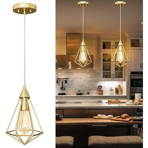 Lowest Ever! Get 2-Pack DWVO Pendant Light Fixtures, Farmhouse Metal Cage Hanging Ceiling Lamps with E26 Socket (Gold) from Amazon.com (via DWVO).
