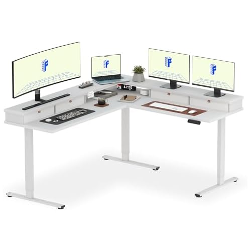 Super Hot! Lowest Ever! Get Flexispot 71" Large L Shaped Standing Desk Electric Corner Table with Shelf, 4 Storage Drawers, Adjustable Computer Workstation for Home, Office, Game, Studio, White Top + White Frame from Amazon.com (Sold by FlexiSpot, Fulfilled by Amazon).
