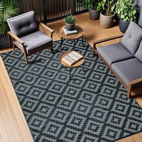 Super Hot! Lowest Ever! Get 5 feet x 8 feet FcyLd Geometric Waterproof Plastic Outdoor Rugs (Black & Gray) from Amazon.com (Sold by FcyLd Life, Fulfilled by Amazon).