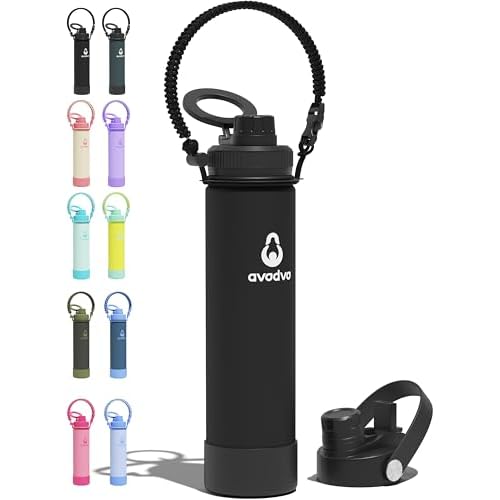 Super Hot! Lowest Ever! Get Avodvo 24 oz Insulated Water Bottle with 2 Lids (2-in-1 Straw & Spout Lid, Magnetic Lid), Stainless Steel Water Bottle for Hiking, Gym, Travel (Black) from Amazon.com (Sold by AVODVO, Fulfilled by Amazon).