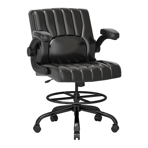 Get FLEXISPOT Comfortable Drafting Black Desk Office Chair with Adjustable Foot Ring Footrest/Flip-up Armrest/4.7in Thick Seat Cushion, Back, Leather Seat from Amazon.com (Sold by FlexiSpot, Fulfilled by Amazon).