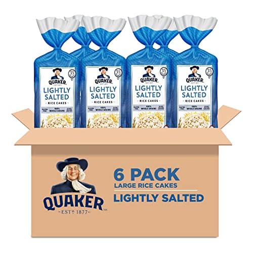 These Quaker rice cakes are crispy and fresh, not stale. Lightly salted is perfect—great gluten-free, low-cal snack. 6-pack is a good deal. Perfect with peanut butter or avocado for quick breakfast or snack. Handy for on-the-go!
