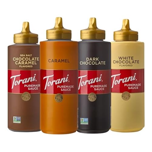 Get Set of 4 Torani Puremade Dessert & Drink Sauce Variety Pack, Chocolate Caramel, Dark Chocolate, White Chocolate & Caramel (16.5 fl oz) from Amazon.com (Sold & Shipped directly by Amazon).