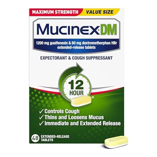 This 48-count Mucinex DM 12Hr is a solid choice for cold relief. The extended-release formula works well, providing 12 hours of cough suppression. Good value for the quantity. I've used it for years - effective for chest congestion and nighttime coughs. Quality is consistent with brand reputation. Perfect for stocking up during cold season.